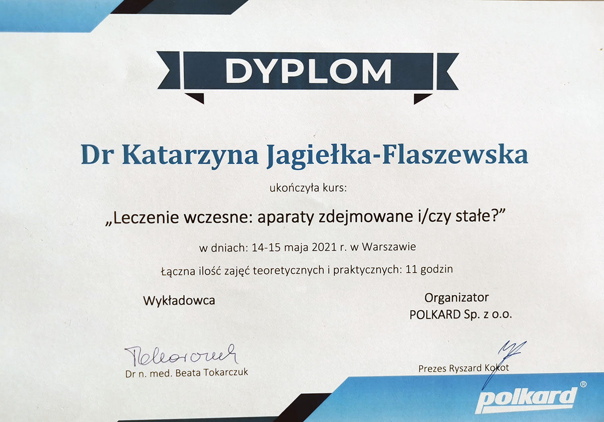 Natomiast aktywne leczenie ortodontyczne indywidualnie zaprojektowanymi aparatami wyjmowanymi zaczynamy wykonywać u dzieci ok. 6-7 roku życia. Jeśli dziecko współpracuje i jest emocjonalnie dojrzałe, zaczynamy taką terapię wcześniej. Specjalnie dla małych pacjentów mamy w ofercie aparaty o szerokim wachlarzu kolorów.