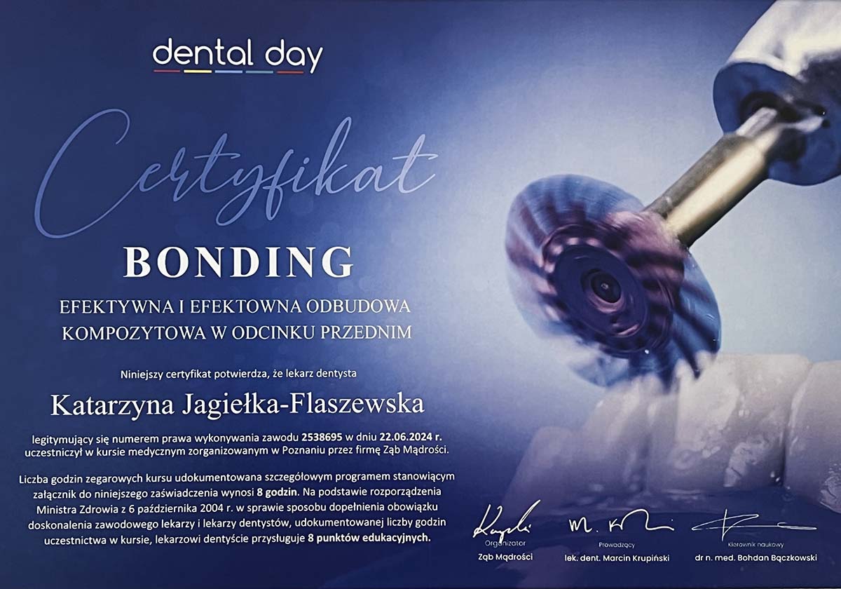 Bonding zębów to nieinwazyjna metoda odbudowy powierzchni zębów wykonywana w gabinecie stomatologicznym. Polega na pokryciu powierzchni zęba cienką warstwą kompozytu czyli materiału znanego z jego stosowania do wypełnień. To szybki i skuteczny sposób odbudowy zębów, aby uzyskać doskonały efekt estetyczny bez ingerencji w tkanki zęba.