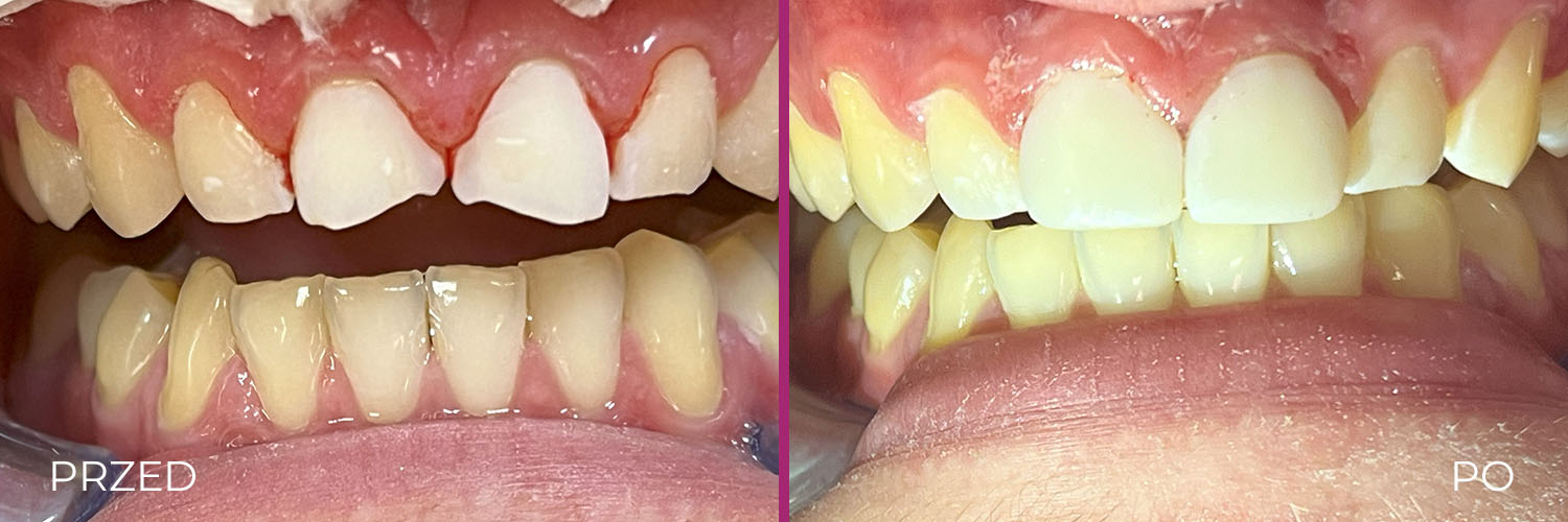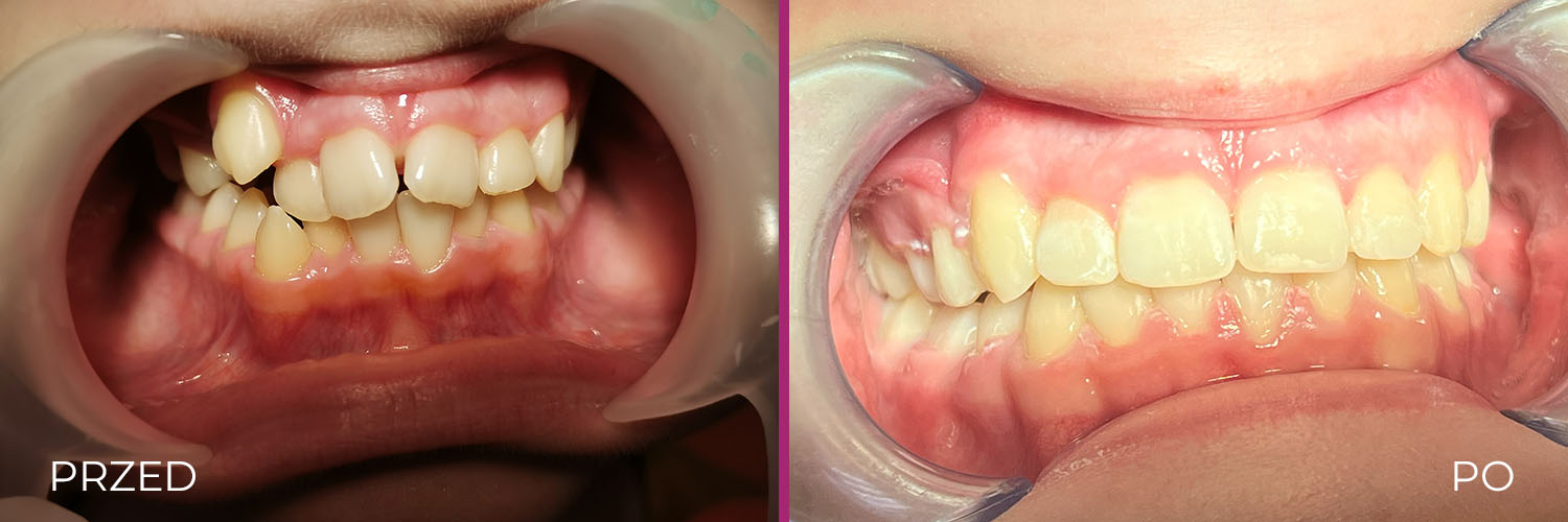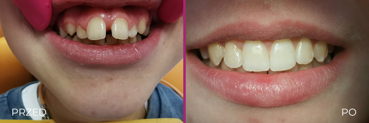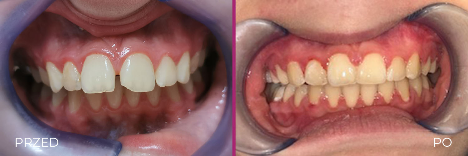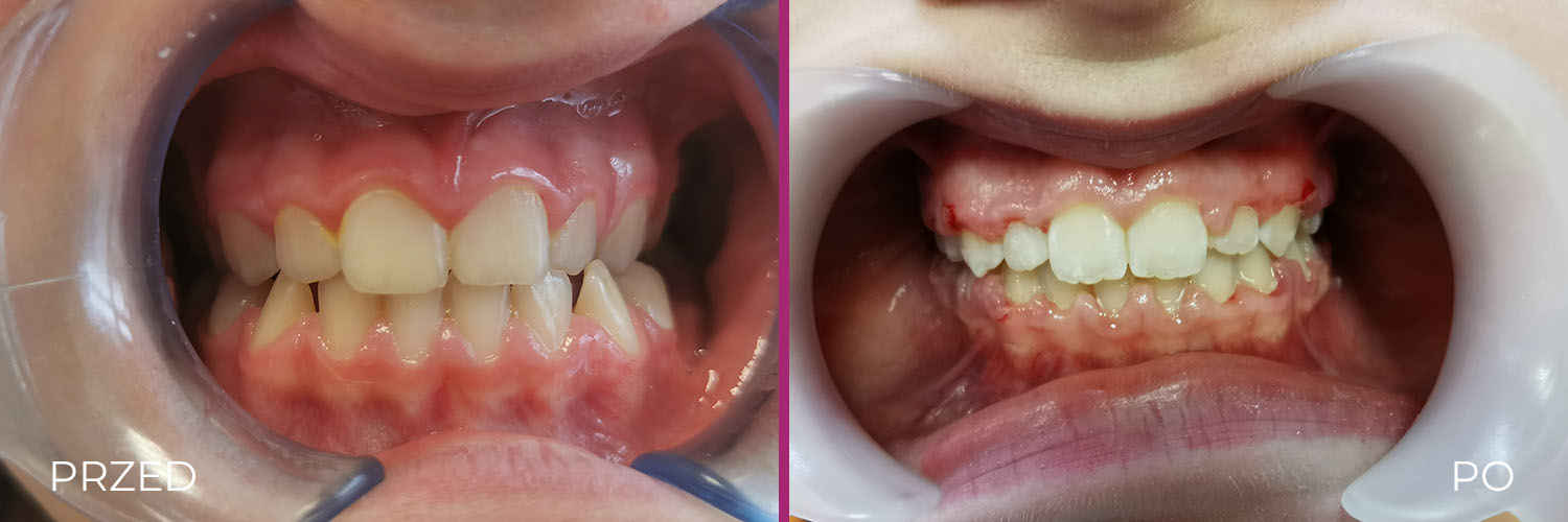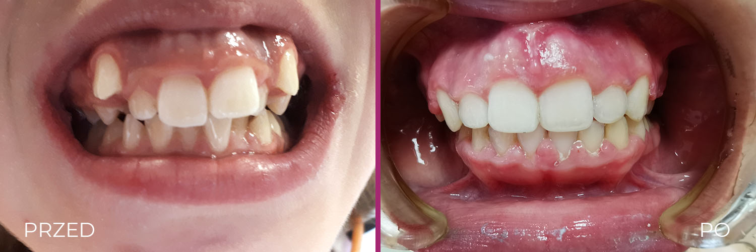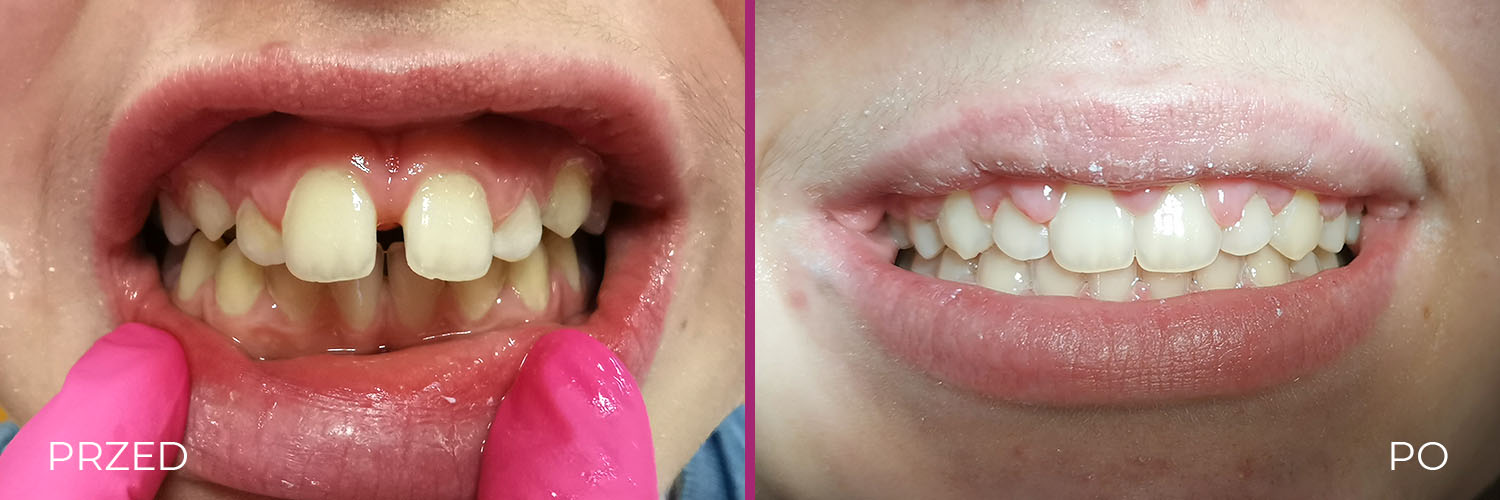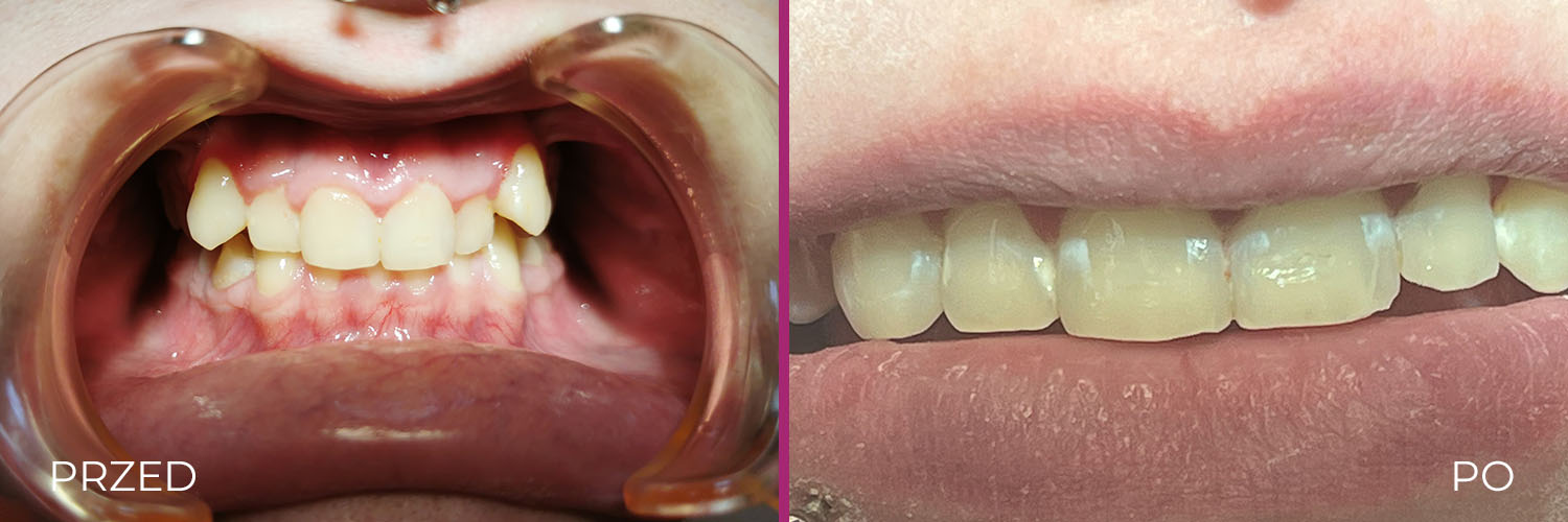 Rezultatem takiego leczenia jest nie tylko piękny szeroki uśmiech bez ekstrakcji zębów, ale również odmłodzenie wyglądu twarzy.